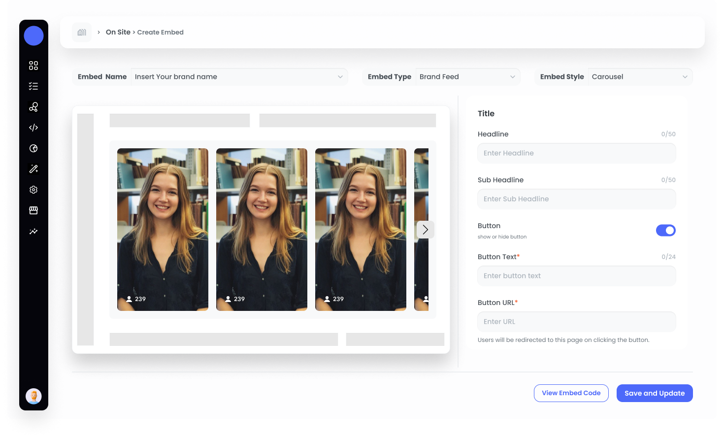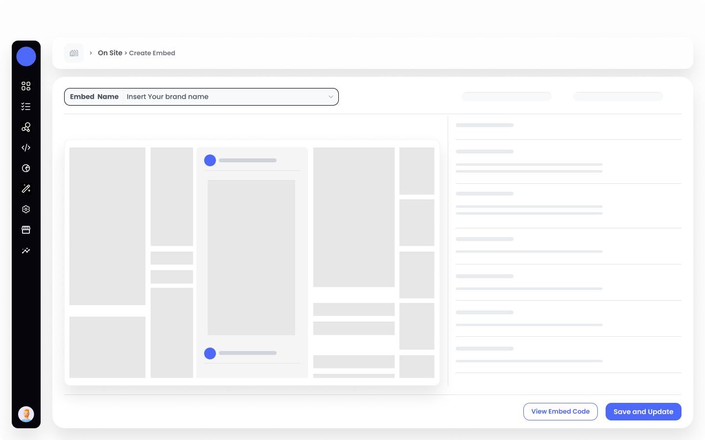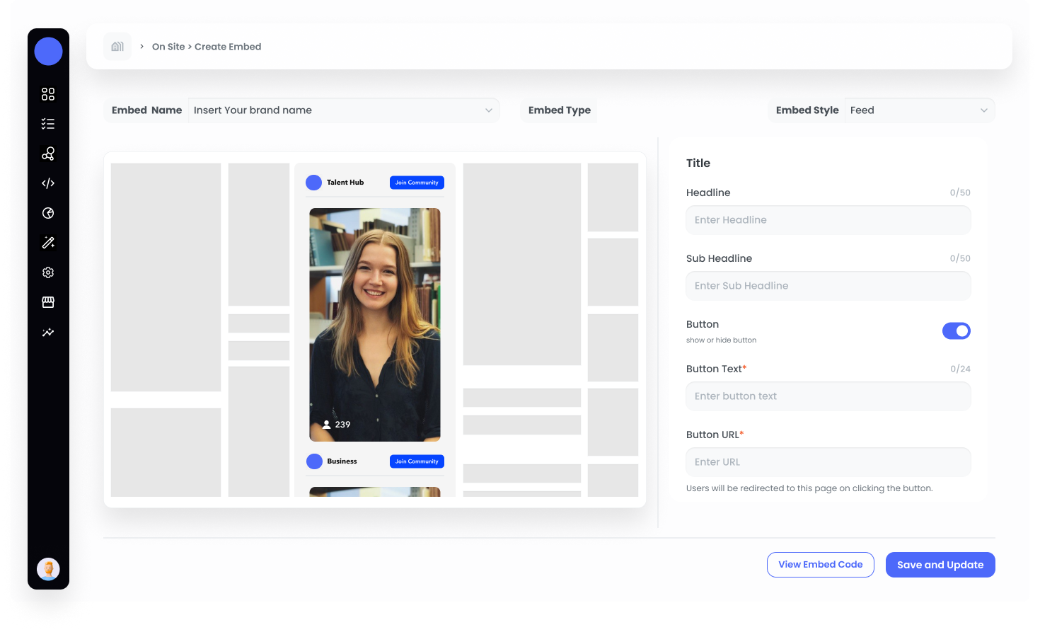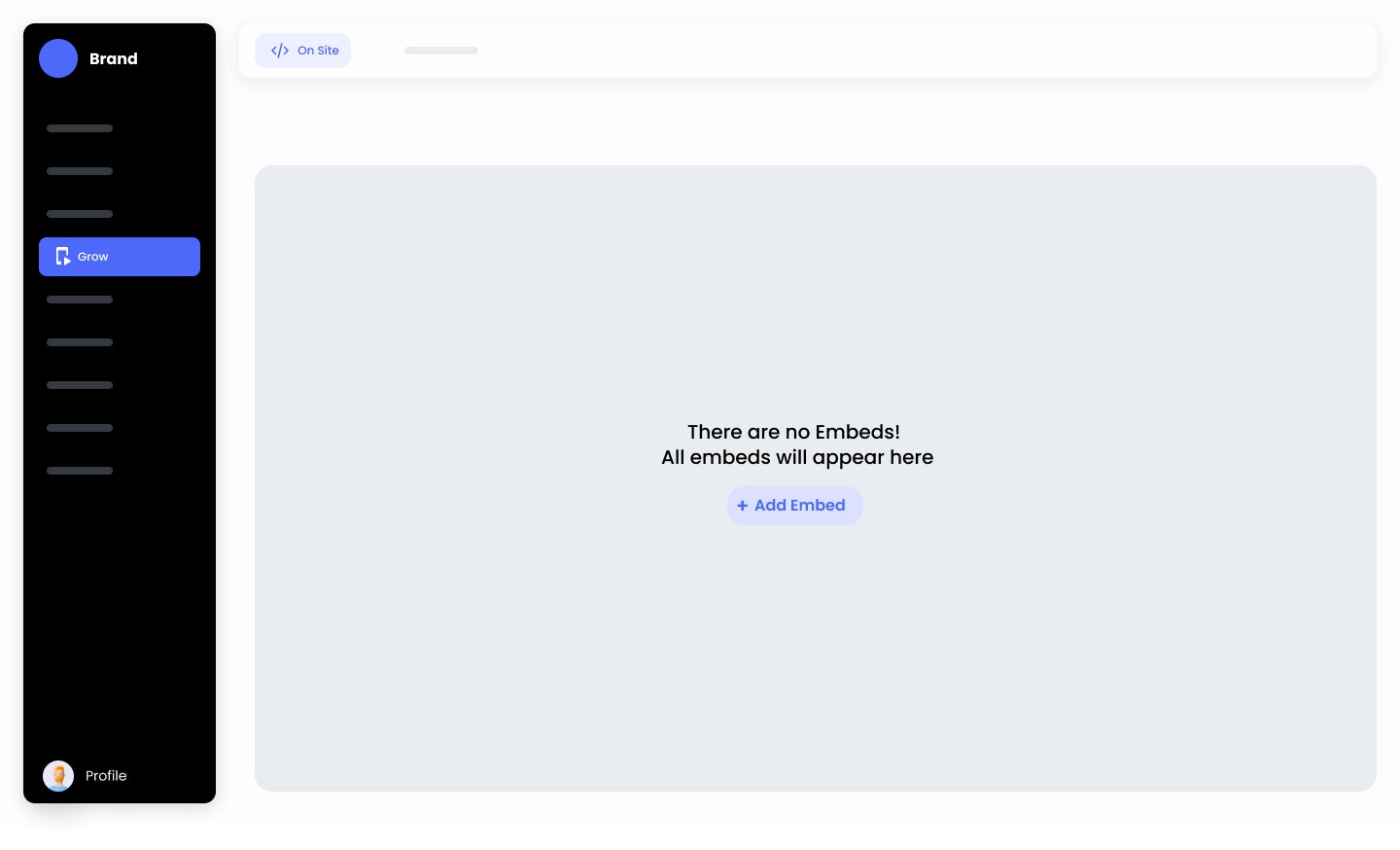 Start by logging into your Brand Control Center and navigating to the Grow > On Site section.Step 2: Click on +New Embed