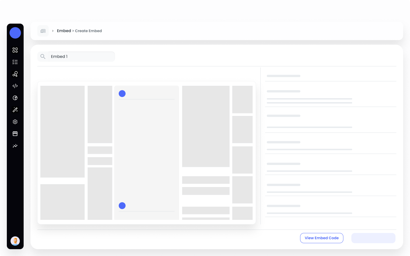 After configuring all settings, click on “View Embed Code.” A slider will open from the right, providing you with the code.