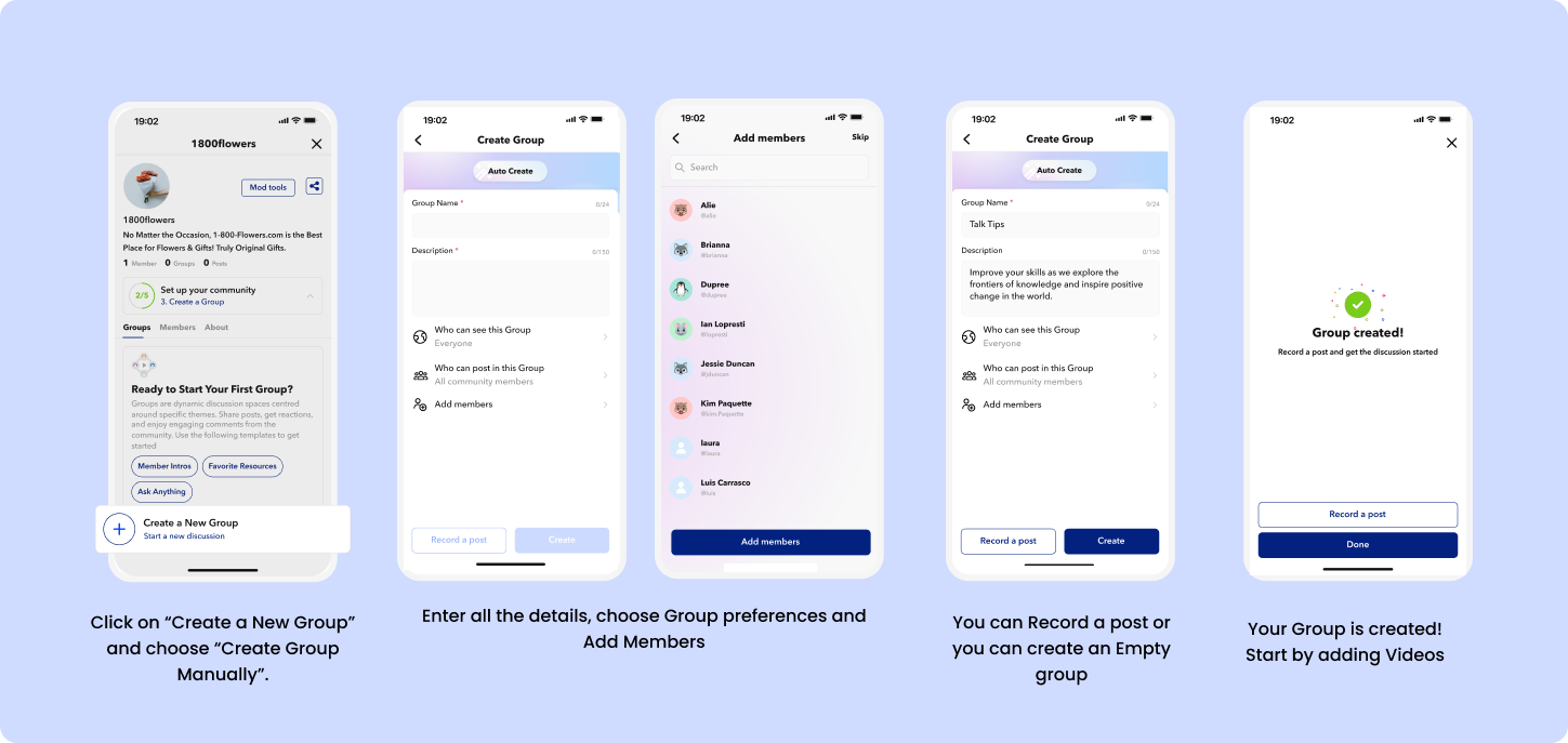 Once a Group is set up, users can start sharing content right away.Manually Create Video