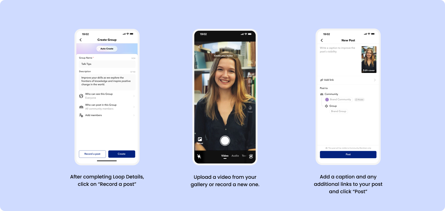 - Tap “Post” to publish the video and create the Group.