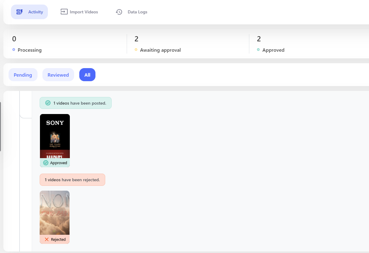 By clicking on the View button, you can see the video, along with its details and Approve/Reject options.