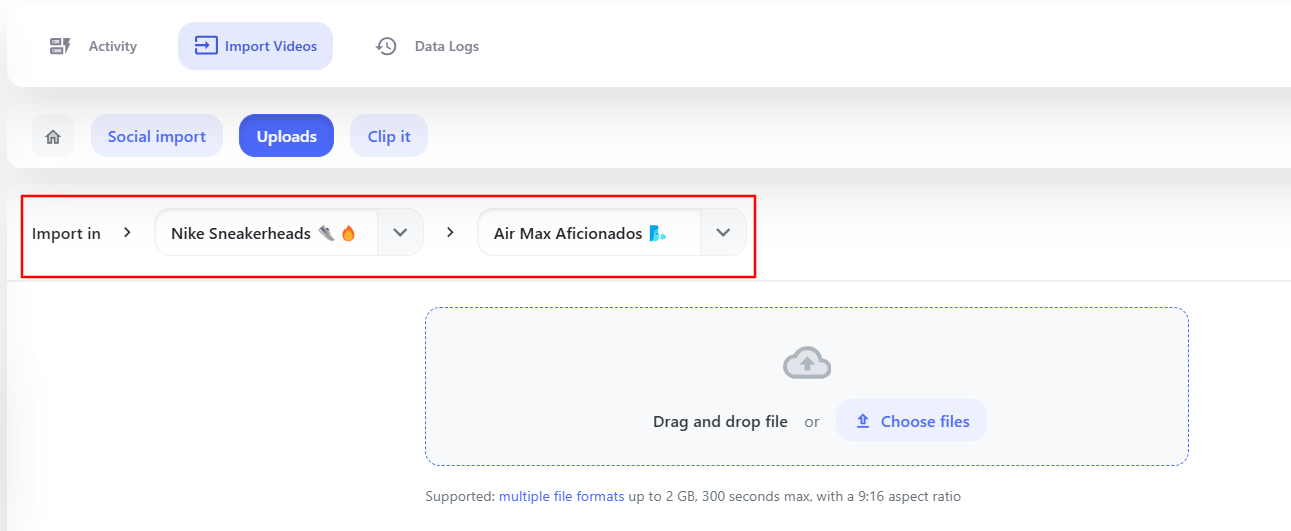 Note: The duration of video shall be less than 300 seconds and up to 2 GB in size. Supported formats to upload files are mp4, mov, avi, wmv, mkv, webm.